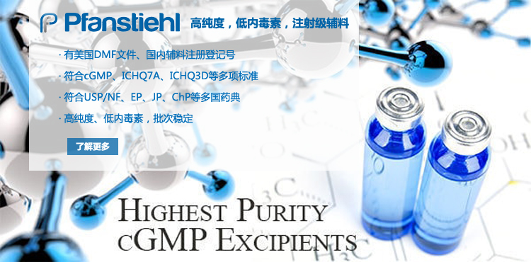 “熱烈祝賀Pfanstiehl的注射級甘氨酸Glycine(G-140)喜獲CDE登記號F20250000403, 這是Pfanstiehl產品獲得的第18個CDE登記號!”甘氨酸在醫藥輔料制劑中應用廣泛,, 可作為緩沖劑,增溶劑,穩定劑等,具有諸多優勢。Pfanstiehl秉承一貫高品質理念,為滿足全球生物制藥行業對于高品質甘氨酸的需求,隆重推出的注射級甘氨酸Glycine (G-140), 具有超高純度,超低內毒素,超低金屬殘留的特點,單獨檢測29種金屬離子,并且新增DNA,RNA,DNA酶,RNA酶和脂肪酶,亞硝酸鹽等多項質量指標的檢測,符合多國藥典規定(USP, EP, BP, JPE, ChP),可用于生物治療性藥物和疫苗的生產。產品信息:· 產品名稱:Glycine, High Purity, Low Endotoxin, Low Metals, USP, EP, BP, JPE, ChP (G-140)· 中文名稱:甘氨酸· 分子式:C2H5NO2· 分子量:75.07 g / mol· CAS號:56-40-6· 產品貨號:G-140產品特點: · 超高純度,超低內毒素,超低微生物含量,超低金屬雜質殘留· 質量指標新增DNA,RNA,DNA酶,RNA酶,脂肪酶和亞硝酸鹽檢測· 符合多國藥典:USP, EP, BP, JPE, ChP· 符合ICH Q3D標準· 符合GMP標準· 已獲DMF和CDE登記號 產品應用:· 緩沖劑· 穩定劑· 增溶劑如果您對Pfanstiehl注射級別Glycine G-140感興趣,歡迎聯系Pfanstiehl 中國區代理商北京西美杰科技有限公司獲得如下詳細的產品概況說明文件和測試樣品。Pfanstiehl Inc.最新產品系列如下,歡迎聯系北京西美杰科技有限公司獲取100g裝免費樣品。北京西美杰科技有限公司為Pfanstiehl中國代理,為客戶提供完善的技術支持與售后服務。歡迎撥打西美杰客服電話400-050-4006或者登陸網站www_xmjsci_com.qeezr.com了解更多信息。 更多>